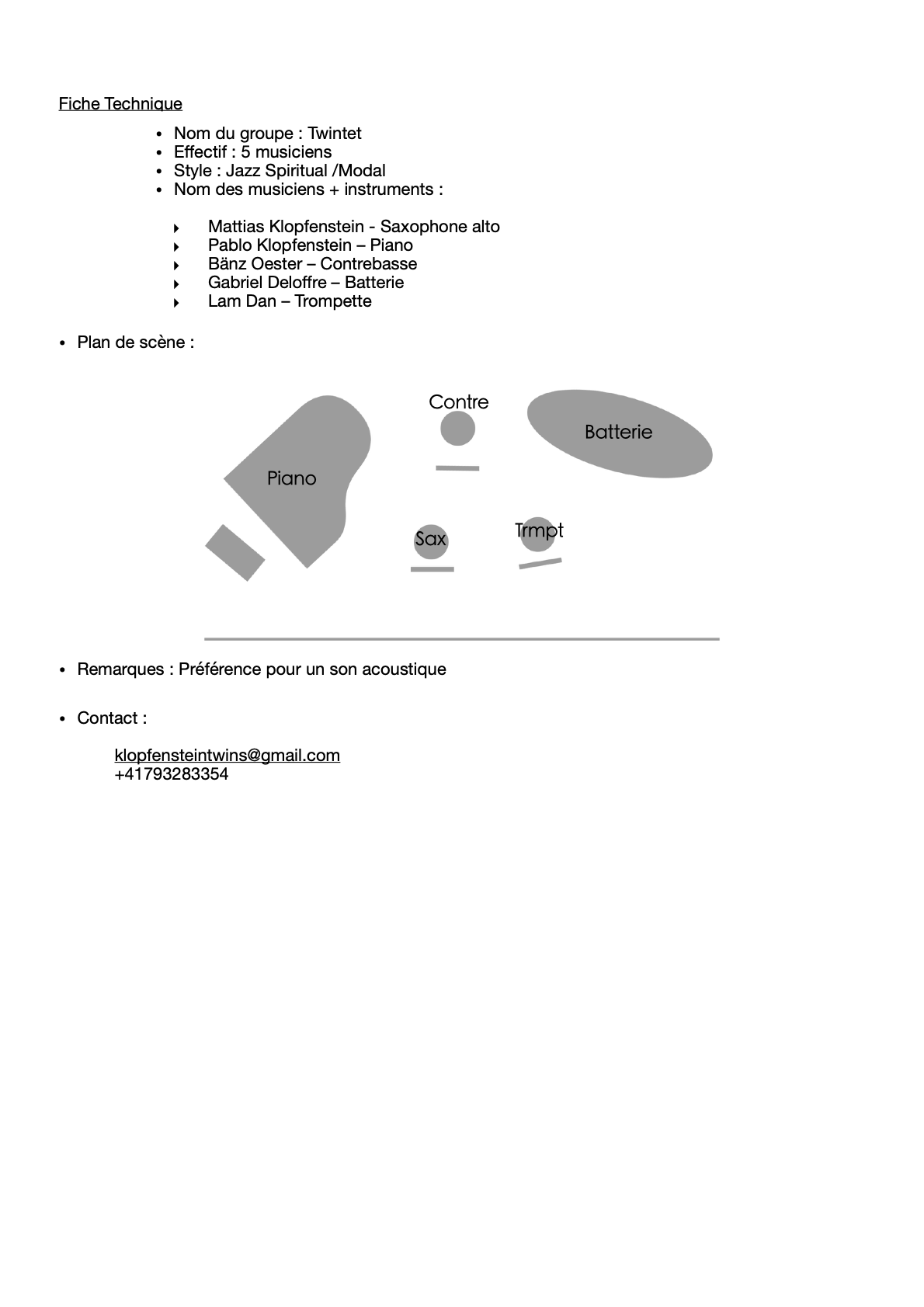 Avec des musiciens engagés à leurs côtés, ils construisent un son de groupe reconnaissable, vivant, en mouvement. Le Twintet ne joue pas pour impressionner, mais pour exprimer, avec sincérité, feu et conviction.